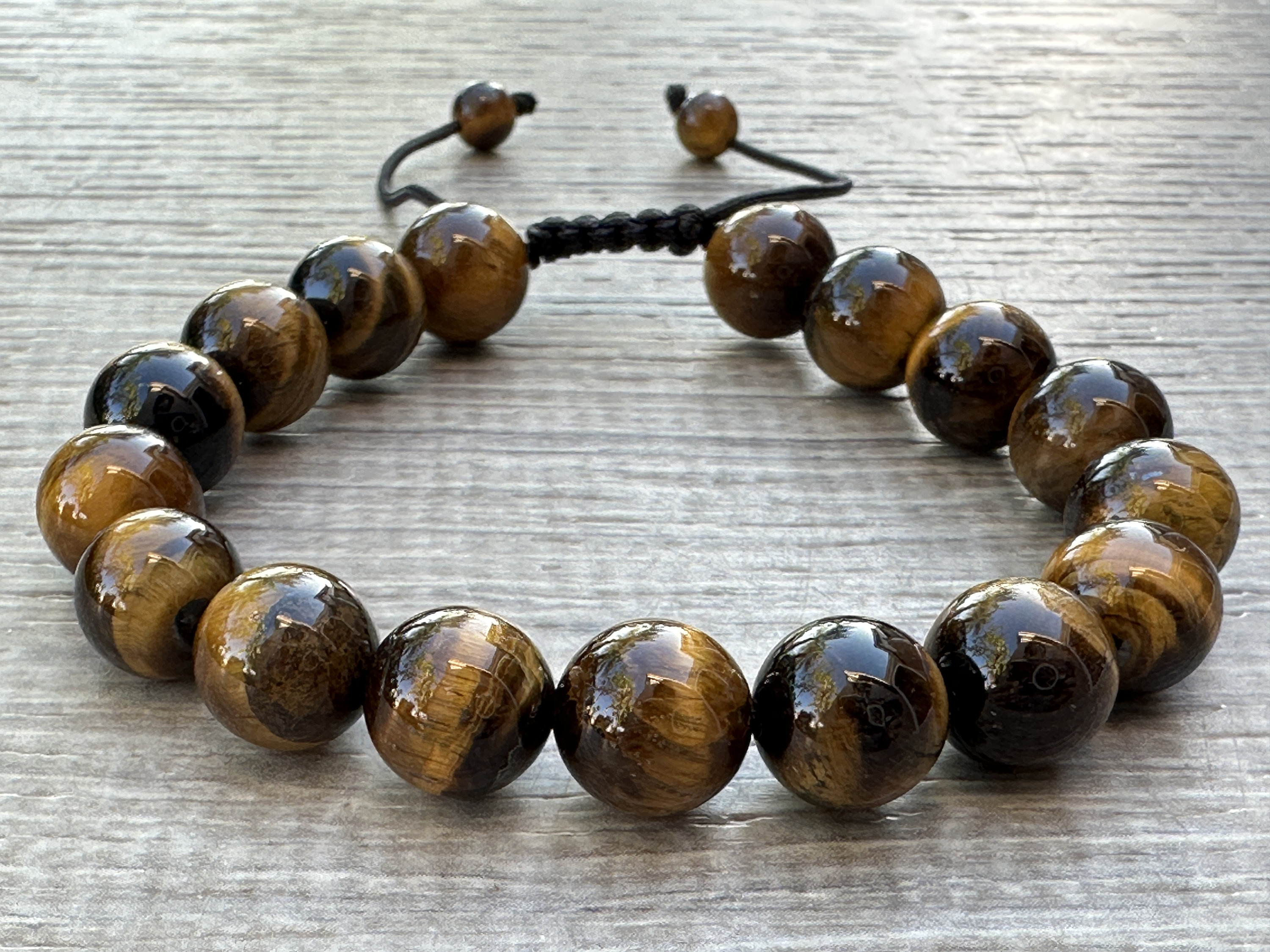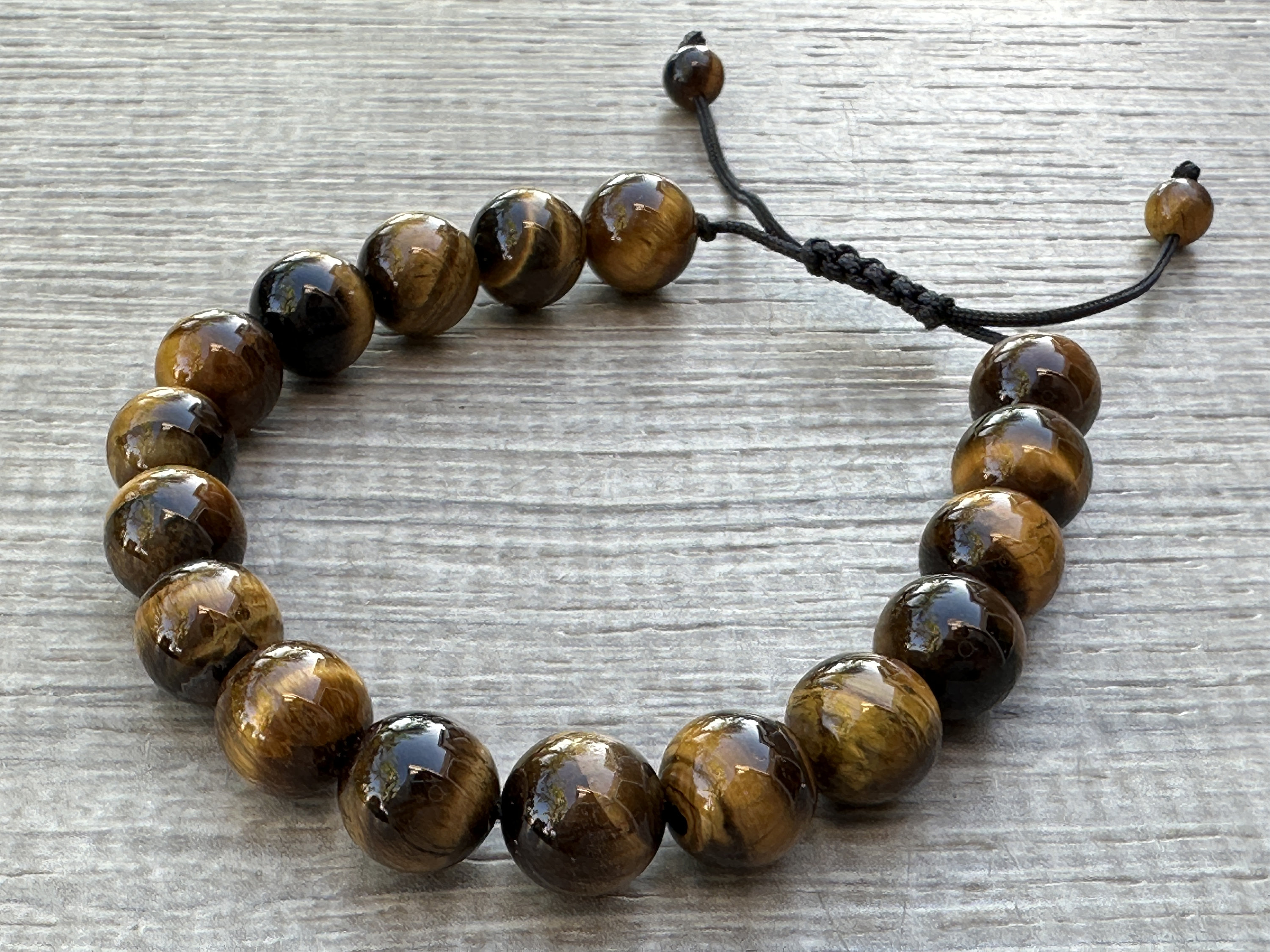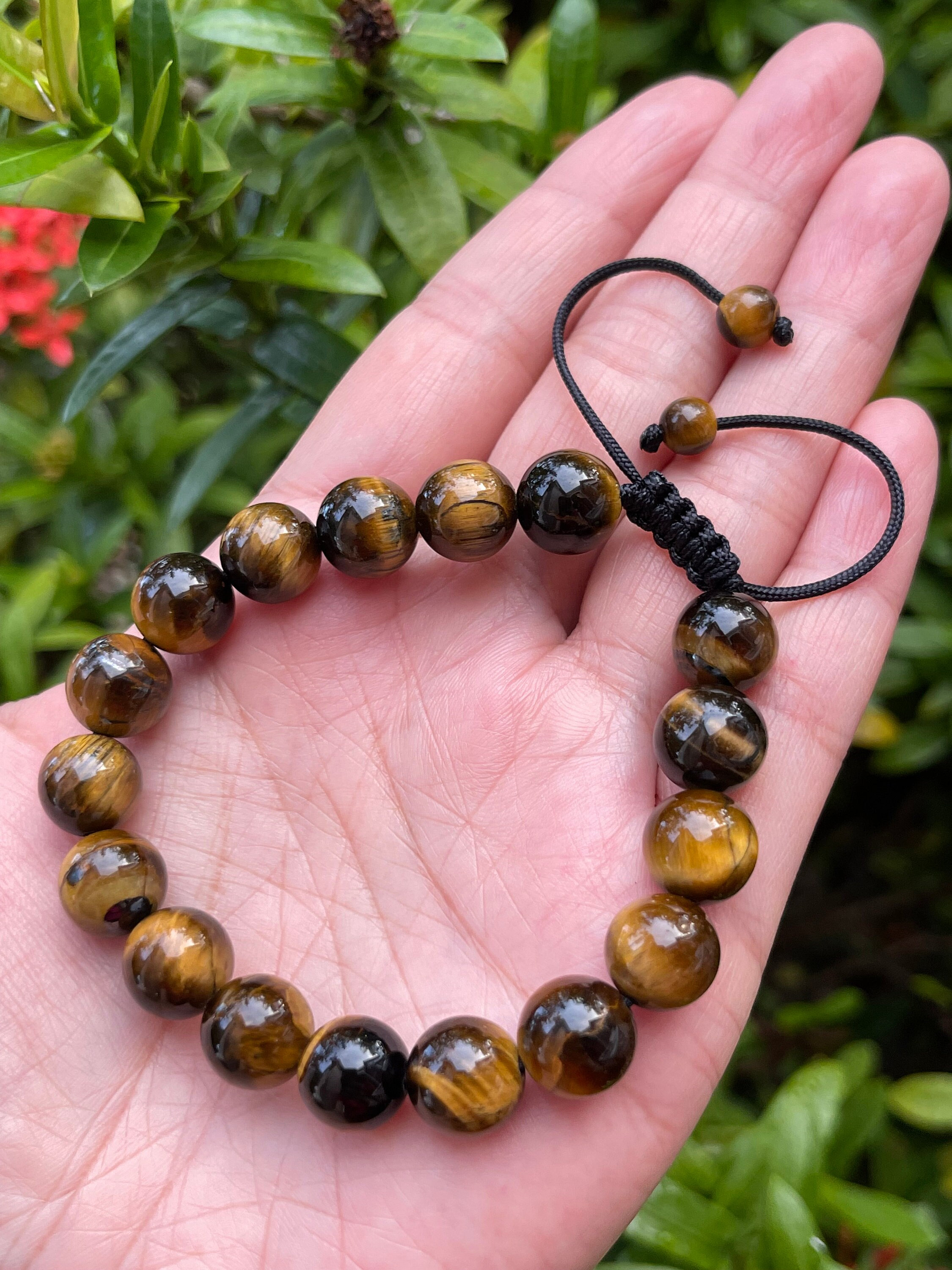 • Tiger Eye Crystal Adjustable Bead Bracelet 10mm, Genuine Gemstone Bracelet, Dispelling Fear and Anxiety, Gift for Men & Women jewelry